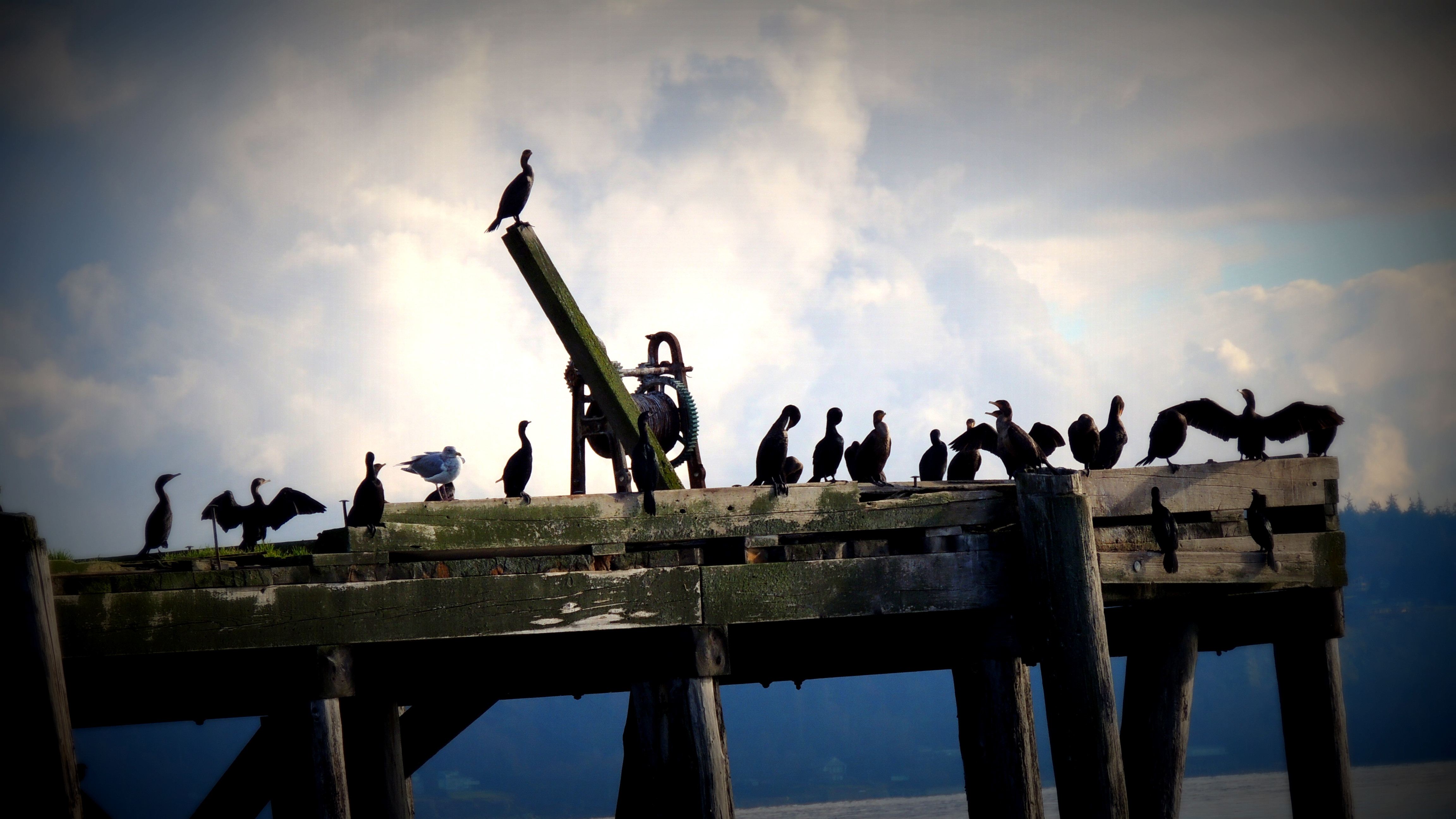 Birds02 Published November 3, 2014 at 4608 × 2592 in My Home: Wonderful North Whidbey Island! ← Previous Next → Sea birds on an old unused pier.