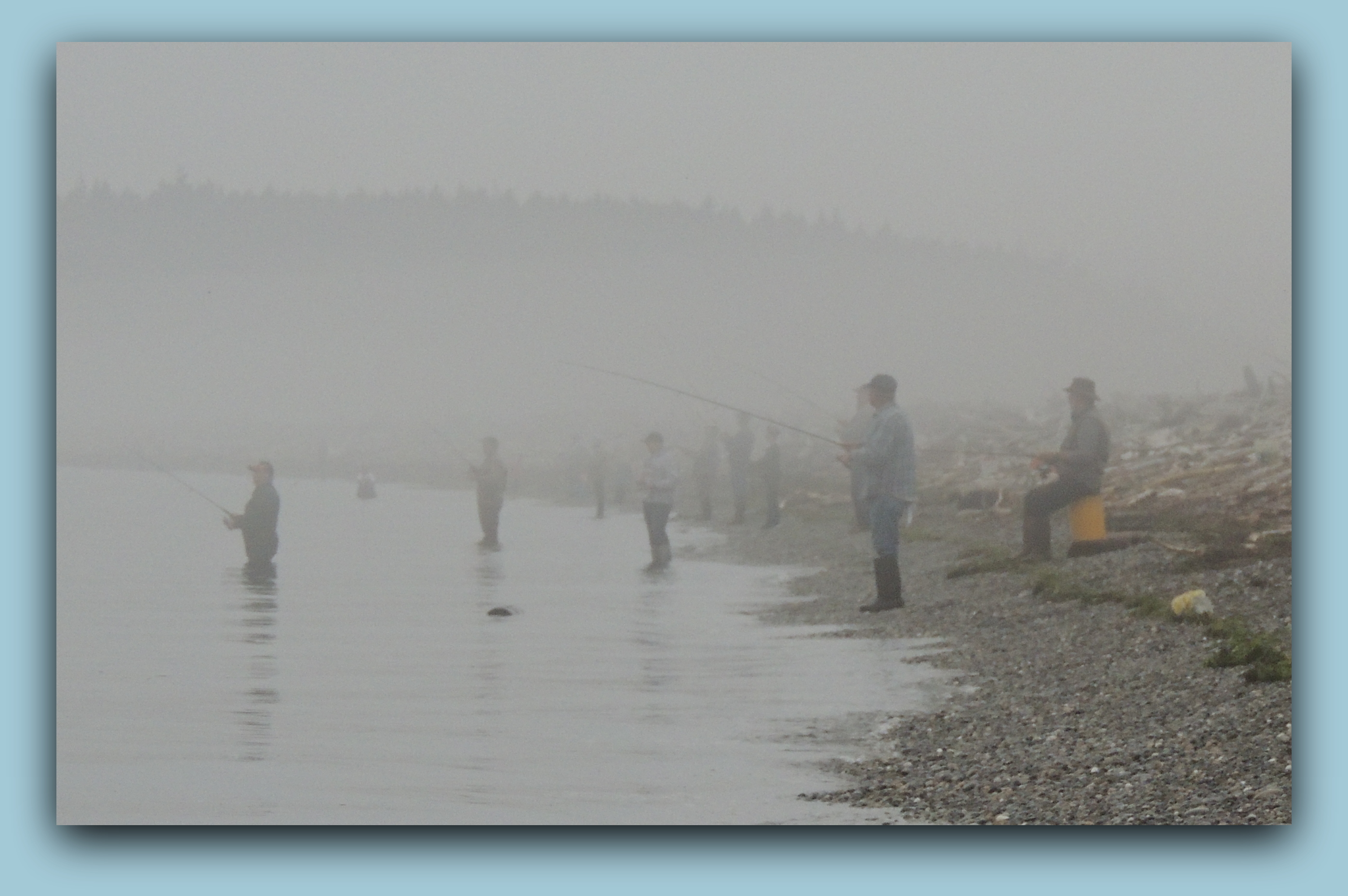 DWB5 Published November 3, 2014 at 2797 × 1859 in My Home: Wonderful North Whidbey Island! ← Previous Next → Fishing in the fog at Drift Wood Beach….