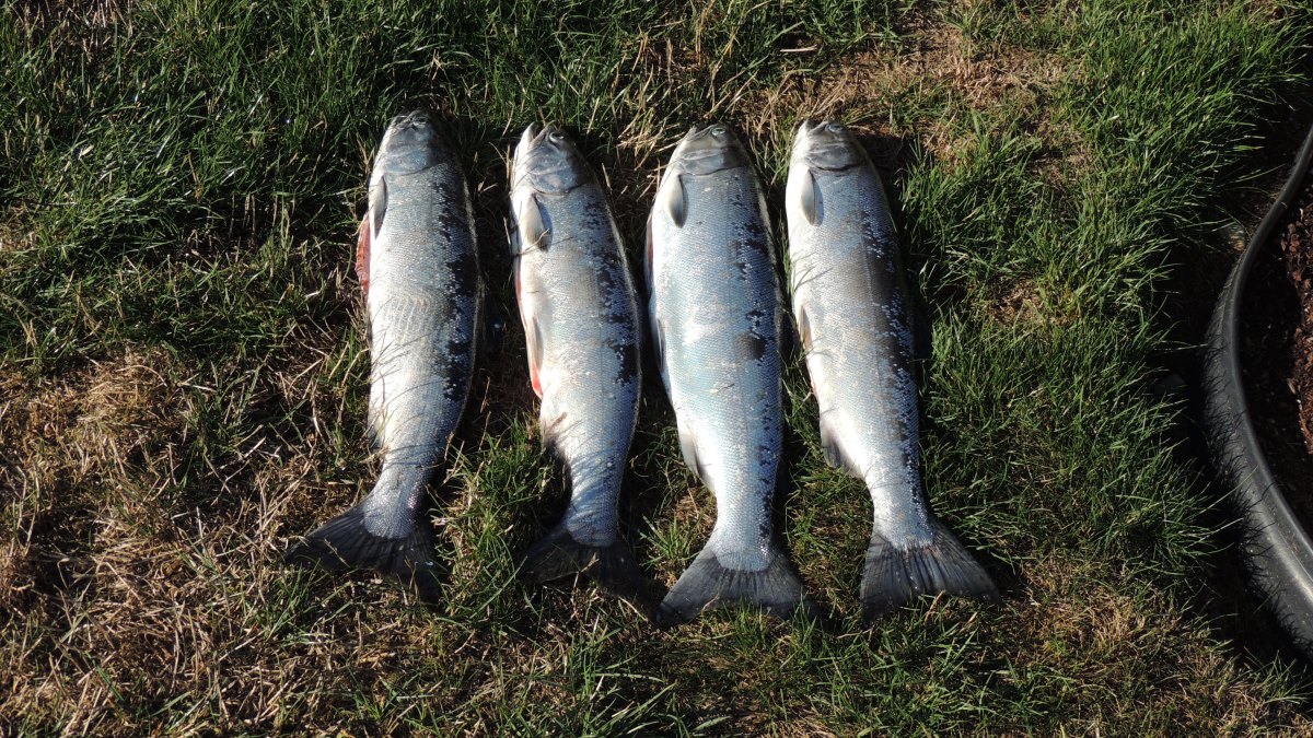 Four Coho Salmon! Published September 21, 2015 at 4608 × 2592 in The Anglers ← Previous Next → Four Coho Salmon!