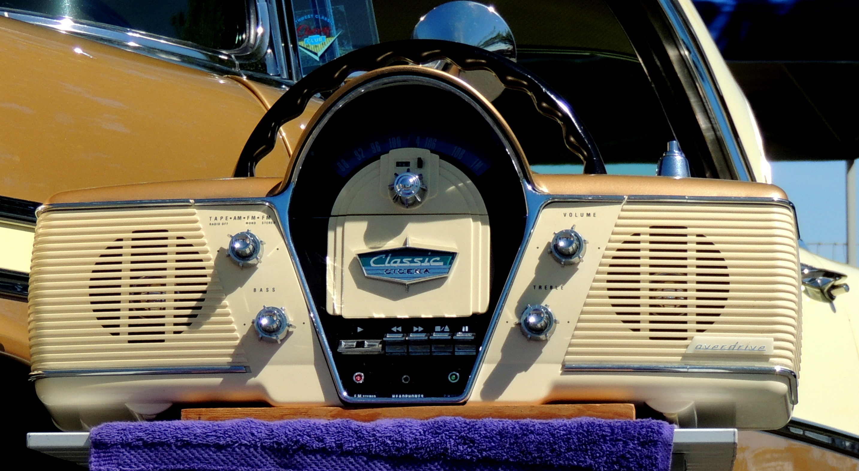Some Kinda Radio Published June 16, 2016 at 2867 × 1572 in Built Of Steel: Vintage Muscle And The Good Old Days ← Previous Next → A vintage-looking radio to compl;ete the display….